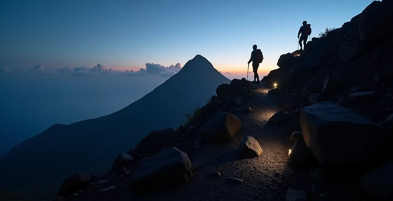 Réussir l’ascension nocturne du Piton des Neiges n’est pas une question de force brute, mais de stratégie physiologique pour déjouer les pièges de l’altitude, du froid et de l’obscurité.