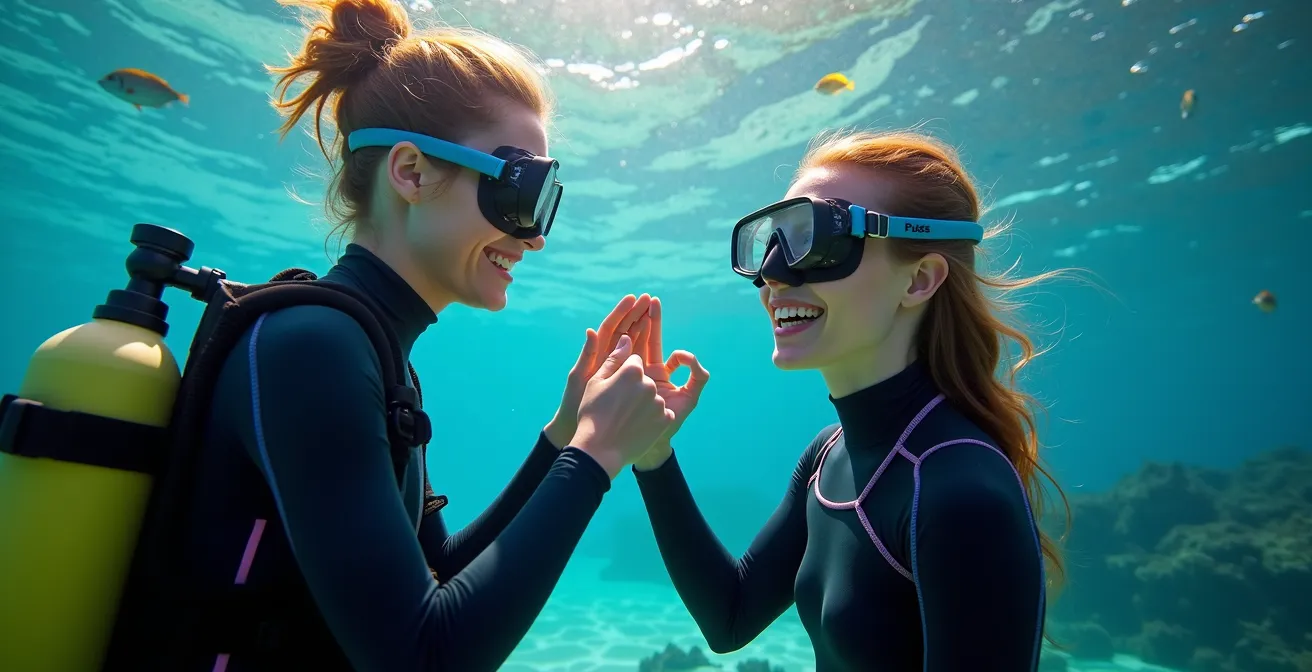 - Apprentissage des signes : Maîtrisez les signes de communication essentiels, notamment le « OK » (le cercle avec le pouce et l’index) et le « pouce vers le haut » qui signifie « on remonte ».